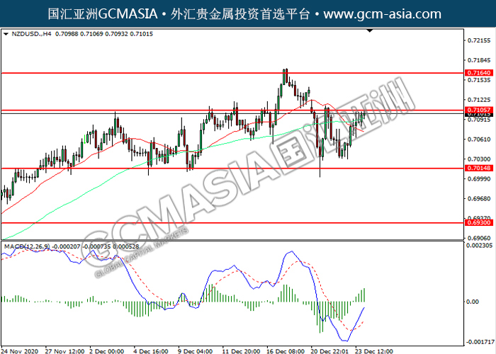 20201224 NZDUSD-午间 by keyk | Dec 24, 2020 | 纽元兑美元 | 0 comments GCMAsia-NZDUSD NZDUSD 2020-12-24 NZDUSD,H4: 纽美震荡上行,目前测试前期压力。MACD多头动能略增,若突破可关注多头为主。上方关注0.7105和0.7165压力,下方关注0.7015支撑和0.6930支撑。
