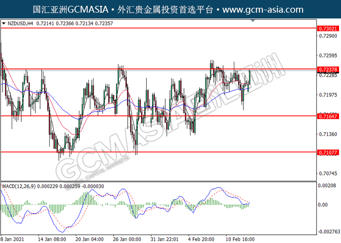 20210215 NZDUSD-午间 by willy | Feb 15, 2021 | 纽元兑美元 | 0 comments GCMAsia - NZDUSD NZDUSD 2021-02-15 NZDUSD,H4: 纽美低位反弹。MACD转向多头,动能略增,短期可关注多头为主。上方关注0.7240和0.7300压力,下方关注0.7165支撑和0.7105支撑。