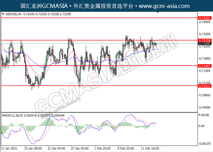 NZDUSD,H4: 纽美低位反弹,目前测试着压力位。MACD转向多头,动能略增,若突破可关注多头为主。上方关注0.7240和0.7300压力,下方关注0.7165支撑和0.7105支撑。