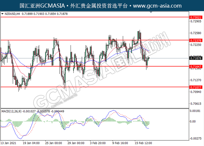 20210218 NZDUSD by willy | Feb 18, 2021 | 纽元兑美元 | 0 comments GCMAsia - NZDUSD NZDUSD 2021-02-18 NZDUSD,H4: 纽美低位反弹。MACD转向多头,动能略增,短期可关注多头为主。上方关注0.7240和0.7300压力,下方关注0.7165支撑和0.7105支撑。