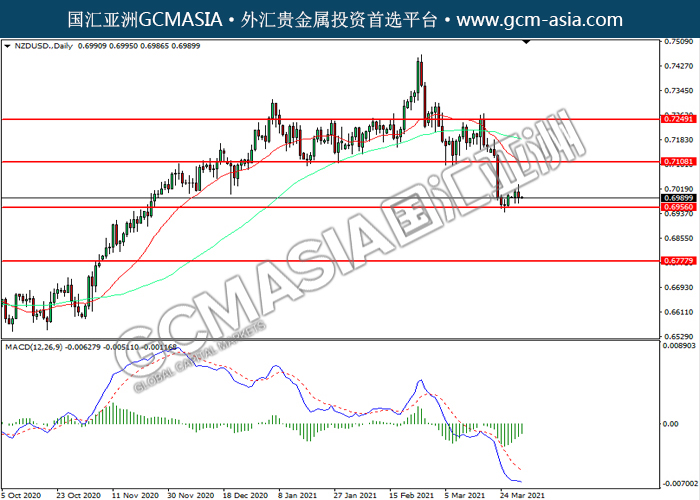 NZDUSD,Daily: 纽美震荡下行,目前测试前期支撑。然而,MACD空头动能略减,短期可关注技术性回调为主。上方关注0.7110和0.7250压力,下方关注0.6955支撑和0.6775支撑。