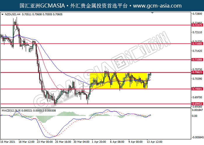NZDUSD,H4: 纽美低位反弹,目前测试着压力位。MACD显示多头信号,动能略增,若突破可关注多头趋势。上方关注0.7060和0.7110压力,下方关注0.7000支撑和0.6945支撑。