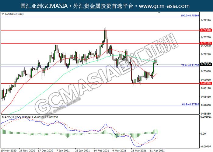 NZDUSD,Daily: 纽美突破前期压力,震荡上行。然而,MACD多头动能略减,短期可关注技术性回调为主。上方关注0.7320和0.7435压力,下方关注0.7110支撑和0.6960支撑。