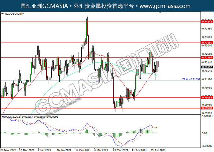 NZDUSD,Daily: 纽美低位反弹,目前测试前期压力。然而,MACD已形成死叉,动能转弱,短期可关注技术性回调为主。上方关注0.7235和0.7320压力,下方关注0.7110支撑和0.7015支撑。