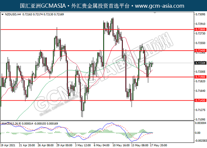 20210518 NZDUSD by willy | May 18, 2021 | 纽元兑美元 | 0 comments NZDUSD,H4: 纽美低位反弹。MACD已形成金叉,动能转强,短期可关注多头为主。上方关注0.7240和0.7280压力,下方关注0.7190支撑和0.7145支撑。