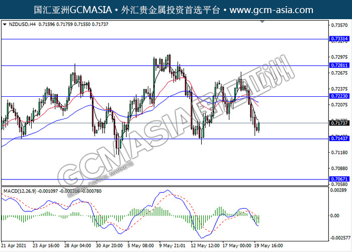 NZDUSD,H4: 纽美空头排列,目前测试靠近前期支撑。MACD形成死叉,动能略减,若突破继续看空为主。上方关注0.7225和0.7280压力,下方关注0.7145支撑和0.7065支撑。