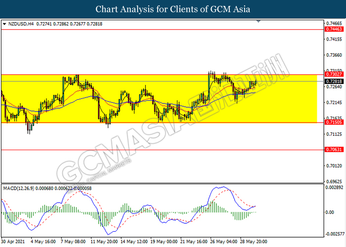 NZDUSD,H4: 纽美震荡交易,目前测试靠近前期压力。然而,MACD形成金叉,空头动能略减,若突破可关注多头方向为主。上方关注0.7300和0.7445压力,下方关注0.7150支撑和0.7065支撑。
