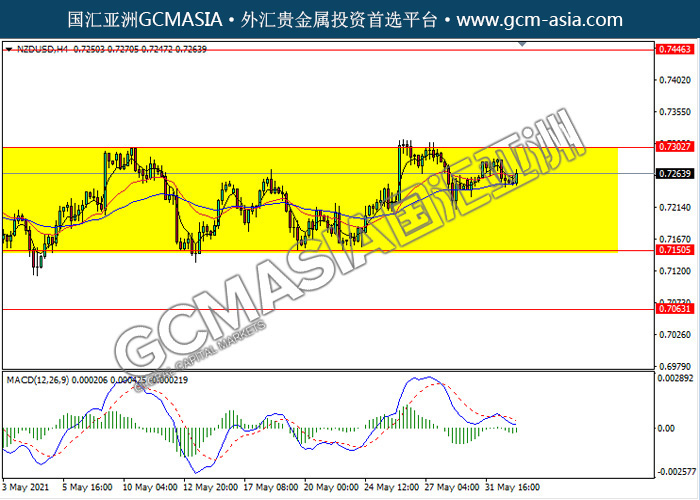 NZDUSD,H4: 纽美仍区间震荡盘整。然而,MACD空头动能略减,短期可关注多头方向为主。上方关注0.7300和0.7445压力,下方关注0.7150支撑和0.7065支撑。