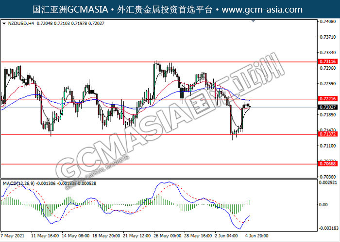 20210607 NZDUSD-午间 by keyk | Jun 7, 2021 | 纽元兑美元 | 0 comments NZDUSD,H4: 纽美多头排列目前测试靠近前期压力。MACD形成金叉,动能略增,若突破可继续看多为主。上方关注0.7220和0.7310压力,下方关注0.7135支撑和0.7065支撑。