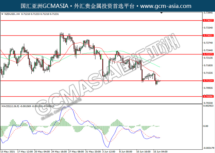 20210616 NZDUSD by willy | Jun 16, 2021 | 纽元兑美元 | 0 comments NZDUSD,H4: 纽美震荡下行,目前测试前期支撑。然而,MACD空头动能略减,短期可关注技术性回调为主。上方关注0.7225和0.7300压力,下方关注0.71425支撑和0.7060支撑。