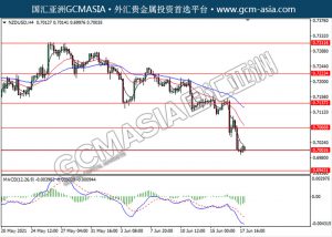 20210618 NZDUSD-午间 by keyk | Jun 18, 2021 | 纽元兑美元 | 0 comments NZDUSD,H4: 纽美空头排列,目前测试前期支撑。然而,MACD空头动能略减,短期关注多头反弹趋势为主。上方关注0.7065和0.7135压力,下方关注0.7000支撑和0.6945支撑。