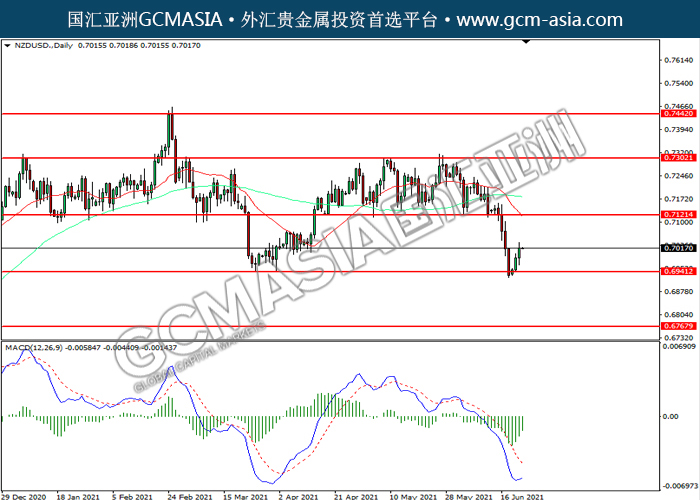 20210623 NZDUSD by willy | Jun 23, 2021 | 纽元兑美元 | 0 comments NZDUSD,Daily: 纽美震荡上行。MACD空头动能略减,短期可关注多头为主。上方关注0.7120和0.7300压力,下方关注0.6940支撑和0.6770支撑。