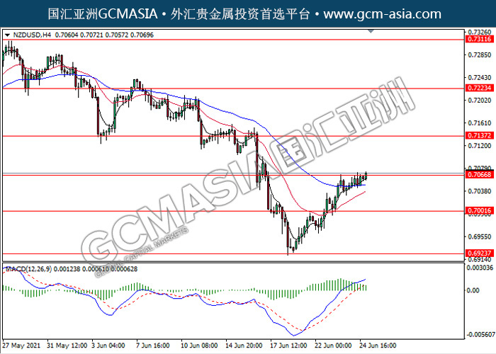 20210625 NZDUSD-午间 by skylow | Jun 25, 2021 | 纽元兑美元 | 0 comments NZDUSD,H4: 纽美多头排列,目前测试靠近前期压力。然而,MACD多头动能略减,短期关注技术性空头回调为主。上方关注0.7065和0.7135压力,下方关注0.7000支撑和0.6925支撑。