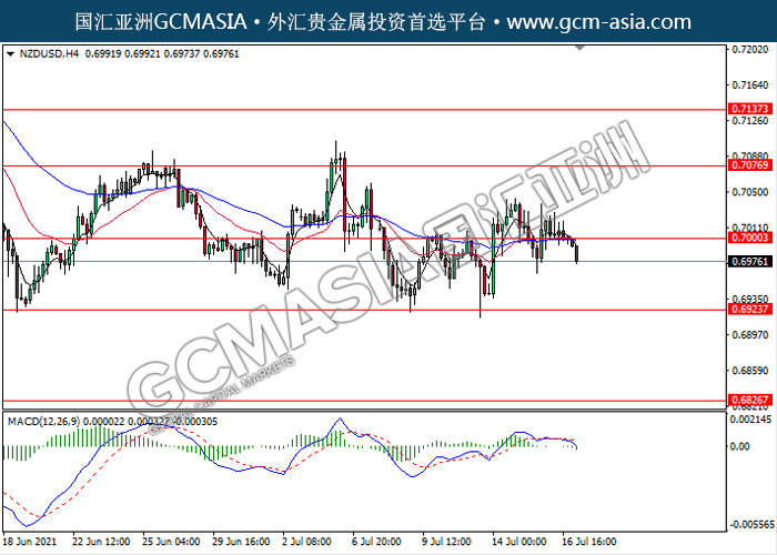 20210719 NZDUSD-午间 by keyk | Jul 19, 2021 | 纽元兑美元 | 0 comments NZDUSD,H4: 纽美突破前期支撑,空头排列。MACD形成死叉,动能略减,短期继续看空为主。上方关注0.7000和0.7075压力,下方关注0.6925支撑和0.6825支撑。