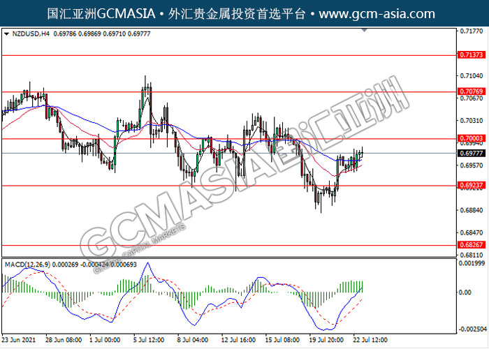 20210723 NZDUSD-午间 by keyk | Jul 23, 2021 | 纽元兑美元 | 0 comments NZDUSD,H4: 纽美震荡上行,目前测试靠近前期压力。MACD动能持续略增,若突破可继续看多为主。上方关注0.7000和0.7075压力,下方关注0.6925支撑和0.6825支撑。