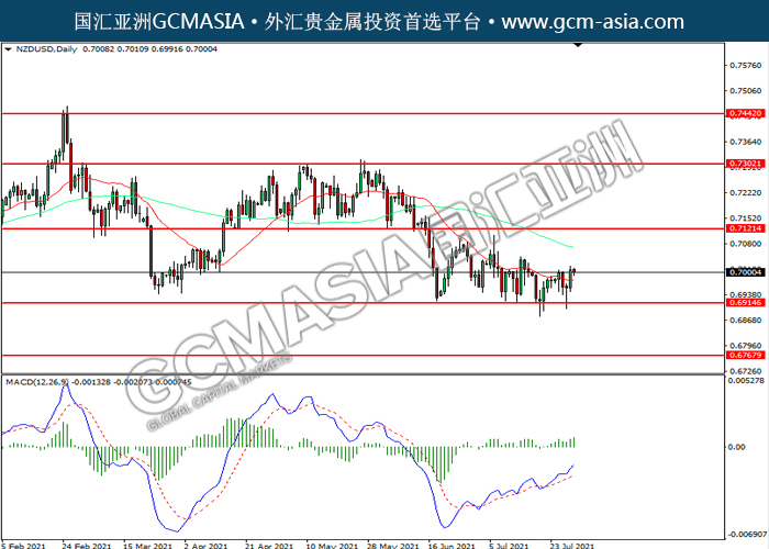 NZDUSD,Daily: 纽美低位反弹。MACD多头动能略增,短期可关注多头为主。上方关注0.7120和0.7305压力,下方关注0.6915支撑和0.6770支撑。