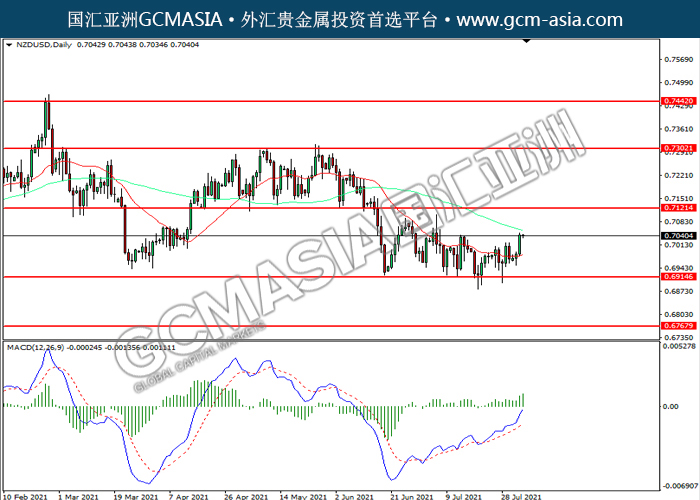 NZDUSD,Daily: 纽美低位反弹。MACD多头动能略增,短期可关注多头为主。上方关注0.7120和0.7305压力,下方关注0.6915支撑和0.6770支撑。