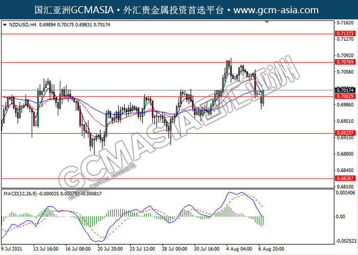 20210809 NZDUSD-午间 by keyk | Aug 9, 2021 | 纽元兑美元 | 0 comments NZDUSD,H4: 纽美触底反弹上行。MACD空头动能略减,短继续关注多头反弹为主。上方关注0.7075和0.7135压力,下方关注0.7000支撑和0.6925支撑。