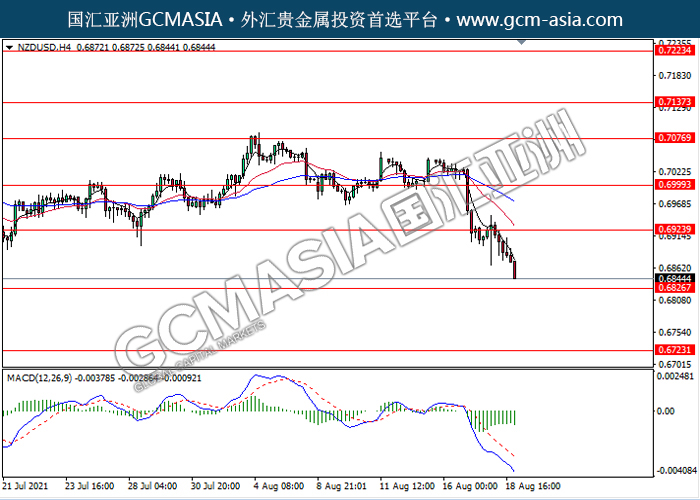 20210819 NZDUSD-午间 by keyk | Aug 19, 2021 | 纽元兑美元 | 0 comments NZDUSD,H4: 纽美空头排列,目前测试靠近前期支撑。MACD动能持续略减,若突破继续看空为主。上方关注0.6925压力和0.7000压力,下方关注0.6825支撑和0.6725支撑。