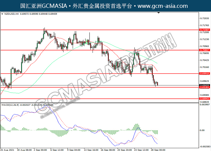 20210929 NZDUSD by keyk | Sep 29, 2021 | 纽元兑美元 | 0 comments NZDUSD,H4: 纽美震荡下行,目前测试前期支撑。MACD空头动能略增,若下破可关注空头为主。上方关注0.6990和0.7080压力,下方关注0.6940支撑和0.6895支撑。