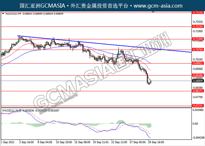 20210930 NZDUSD-午间 by keyk | Sep 30, 2021 | 纽元兑美元 | 0 comments NZDUSD,H4: 纽美低位反弹上行。MACD空头动能略减,短期继续关注技术性多头反弹为主。上方关注0.6915压力和0.6990压力,下方关注0.6815支撑和0.6725支撑。