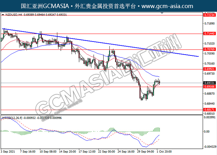 NZDUSD,H4: 纽美突破前期压力,多头排列。MACD动能略增,短期继续看多为主。上方关注0.6990压力和0.7075压力,下方关注0.6915支撑和0.6815支撑。