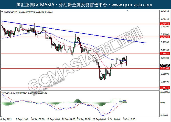 20211006 NZDUSD-午间 by keyk | Oct 6, 2021 | 纽元兑美元 | 0 comments NZDUSD,H4: 纽美高位承压回落,目前测试靠近前期支撑。MACD多头动能略减,若突破可继续看空方向为主。上方关注0.6990压力和0.7075压力,下方关注0.6915支撑和0.6815支撑。