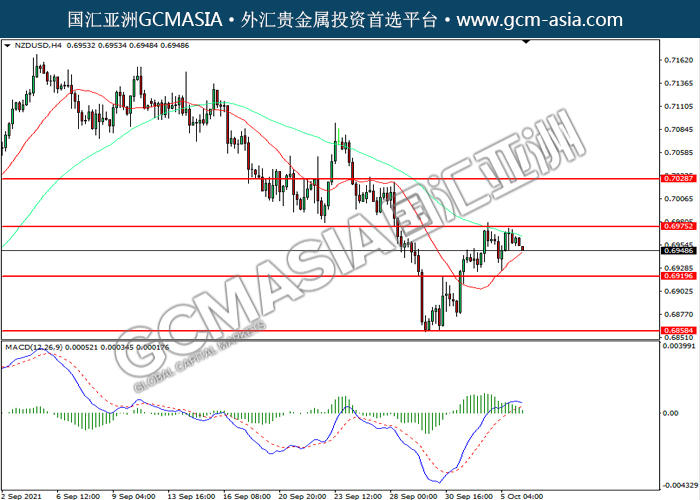 20211006 NZDUSD by keyk | Oct 6, 2021 | 纽元兑美元 | 0 comments NZDUSD,H4: 纽美震荡上行。然而,MACD空头动能略减,短期可关注技术性回调为主。上方关注0.6975和0.7030压力,下方关注0.6920支撑和0.6860支撑