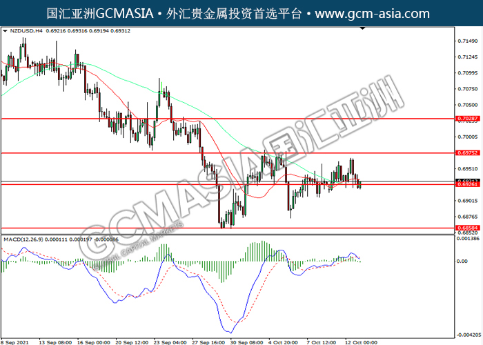 20211013 NZDUSD by willy | Oct 13, 2021 | 纽元兑美元 | 0 comments NZDUSD,H4: 纽美震荡下行,目前测试前期支撑。MACD空头动能略增,若下破可关注空头为主。上方关注0.6975和0.70.30压力,下方关注0.6925支撑和0.6860支撑。