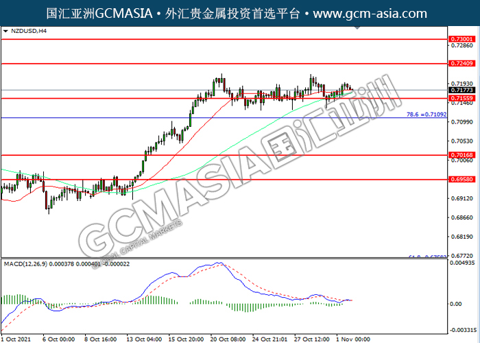 20211102 NZDUSD by willy | Nov 2, 2021 | 纽元兑美元 | 0 comments NZDUSD,H4: 纽美震荡下行,目前测试前期支撑。然而,MACD空头动能略减,短期可关注技术性回调为主。上方关注0.7240和0.7300压力,下方关注0.7155支撑和0.7110支撑。