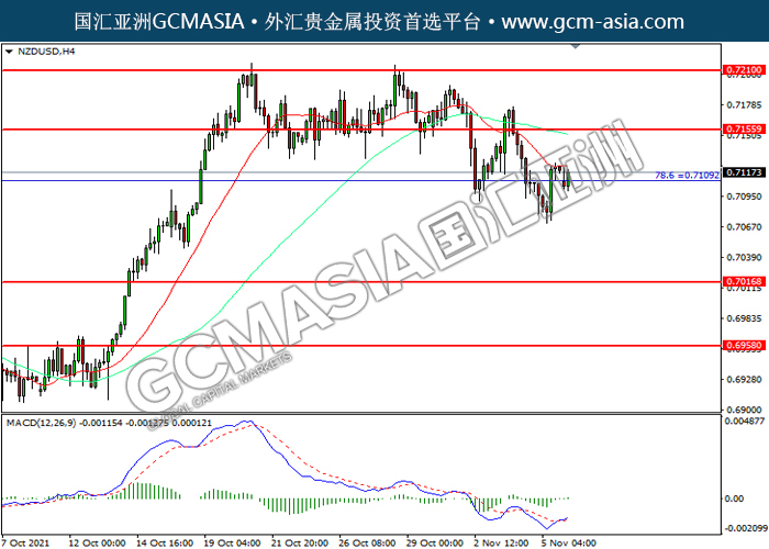 20211108 NZDUSD-午间 by keyk | Nov 8, 2021 | 纽元兑美元 | 0 comments NZDUSD,H4: 纽美震荡下行,目前测试前期支撑。MACD多头动能略增,短期可关注技术性回调为主。上方关注0.7155和0.7210压力,下方关注0.7110支撑和0.7015支撑。