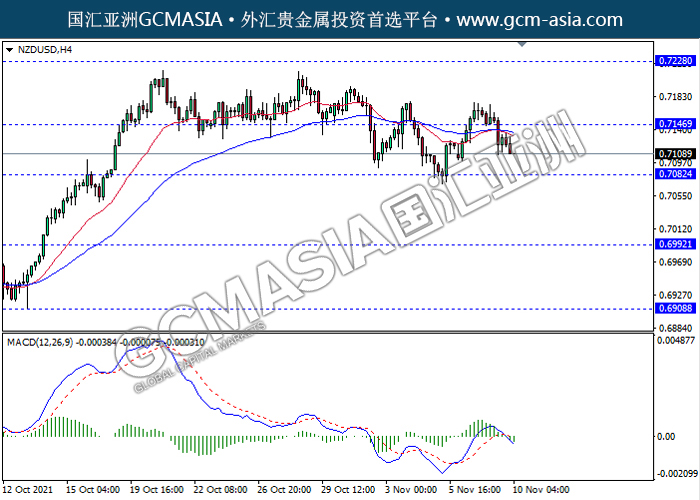 20211110 NZDUSD-午间 by willy | Nov 10, 2021 | 纽元兑美元 | 0 comments NZDUSD,H4: 纽美高位承压回落。MACD形成死叉,动能略减,短期继续看空为主。上方关注0.7145和0.7230压力,下方关注0.7080支撑和0.6990支撑。