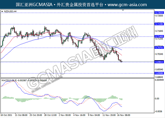 20211117 NZDUSD-午间 by willy | Nov 17, 2021 | 纽元兑美元 | 0 comments NZDUSD,H4: 纽美空头排列,目前测试前期支撑。MACD动能略减,若突破继续看空为主。上方关注0.7075压力和0.7145压力,下方关注0.6980支撑和0.6910支撑。