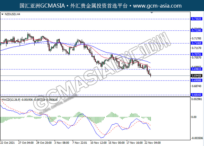 20211123 NZDUSD-午间 by willy | Nov 23, 2021 | 纽元兑美元 | 0 comments NZDUSD,H4: 纽美空头排列,目前测试靠近前期支撑。MACD动能略减,若突破可继续看空为主。上方关注0.6980压力和0.7075压力,下方关注0.6910支撑和0.6815支撑。