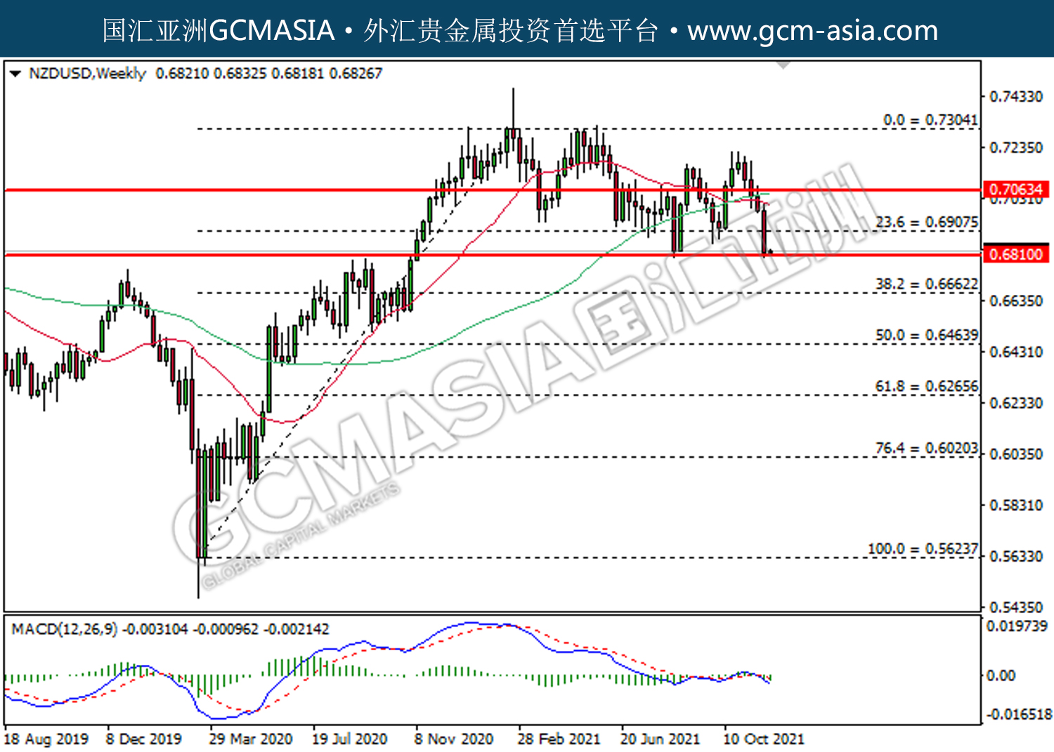 20211129 NZDUSD by willy | Nov 29, 2021 | 纽元兑美元 | 0 comments NZDUSD,Weekly:纽美震荡下行。MACD已形成死叉,动能偏弱,若下破可继续看空。上方关注0.6905压力和0.7065压力,下方关注0.6810支撑和0.6660支撑。