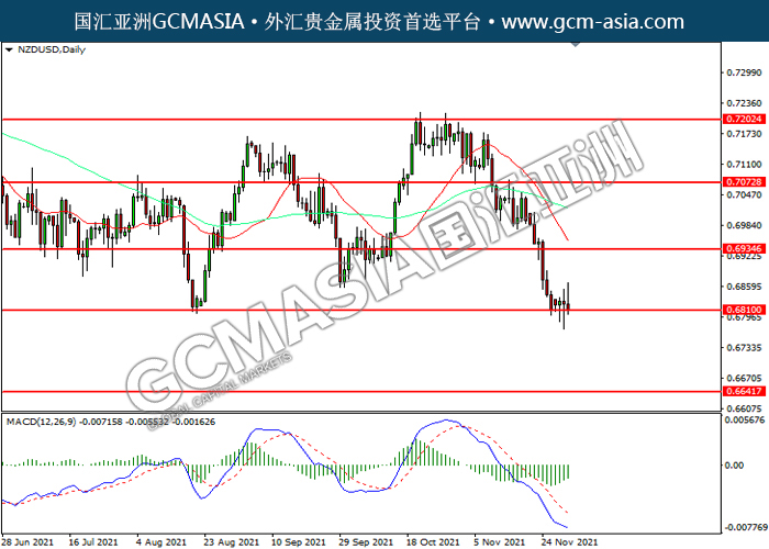 20211202 NZDUSD by willy | Dec 2, 2021 | 纽元兑美元 | 0 comments NZDUSD,Daily: 纽美震荡下行,目前测试前期支撑。然而,MACD空头动能略减,短期可关注技术性回调为主。上方关注0.6935和0.7075压力,下方关注0.6810支撑和0.6640支撑。