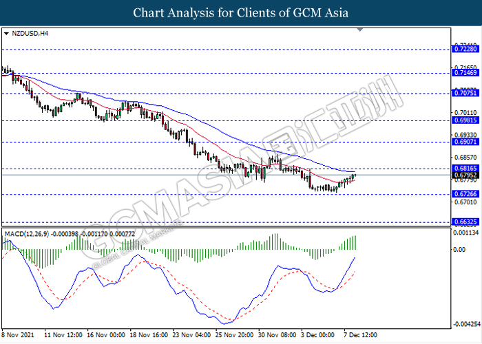 20211208 NZDUSD-午间 by keyk | Dec 8, 2021 | 纽元兑美元 | 0 comments NZDUSD,H4: 纽美触底反弹上行,目前测试靠近前期压力。然而,MACD形成金叉,空头动能略减,短期关注技术性多头反弹为主。上方关注0.6815压力和0.6905压力,下方关注0.6725支撑和0.6630支撑。
