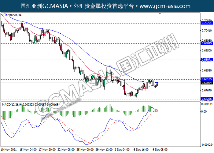 20211210 NZDUSD-午间 by keyk | Dec 10, 2021 | 纽元兑美元 | 0 comments NZDUSD,H4: 纽美震荡上行,目前测试前期压力。MACD动能持续略增,若突破可继续关注多头方向为主。上方关注0.6815压力和0.6905压力,下方关注0.6725支撑和0.6630支撑。