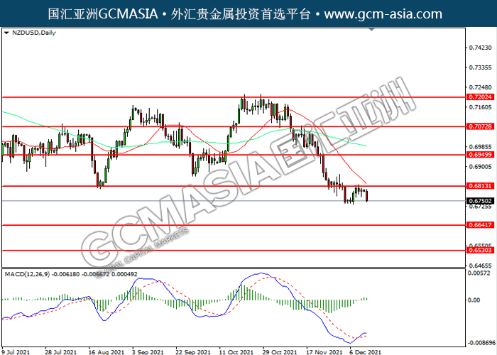 20211214 NZDUSD by willy | Dec 14, 2021 | 纽元兑美元 | 0 comments NZDUSD,Daily: 纽美震荡下行。MACD空头动能略增,短期可关注空头为主。上方关注0.6815和0.6950压力,下方关注0.6640支撑和0.6530支撑。