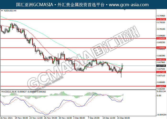 20211216 NZDUSD by willy | Dec 16, 2021 | 纽元兑美元 | 0 comments NZDUSD,H4: 纽美震荡上行。MACD多头动能略增,短期可关注多头为主。上方关注0.6815和0.6890压力,下方关注0.6735支撑和0.6640支撑。