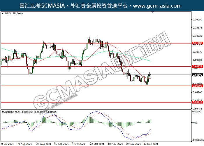 20211224 NZDUSD-午间 by willy | Dec 24, 2021 | 纽元兑美元 | 0 comments NZDUSD,Daily: 纽美震荡上行。MACD多头动能略增,短期可关注多头为主。上方关注0.6895和0.7150压力,下方关注0.6690支撑和0.6510支撑。