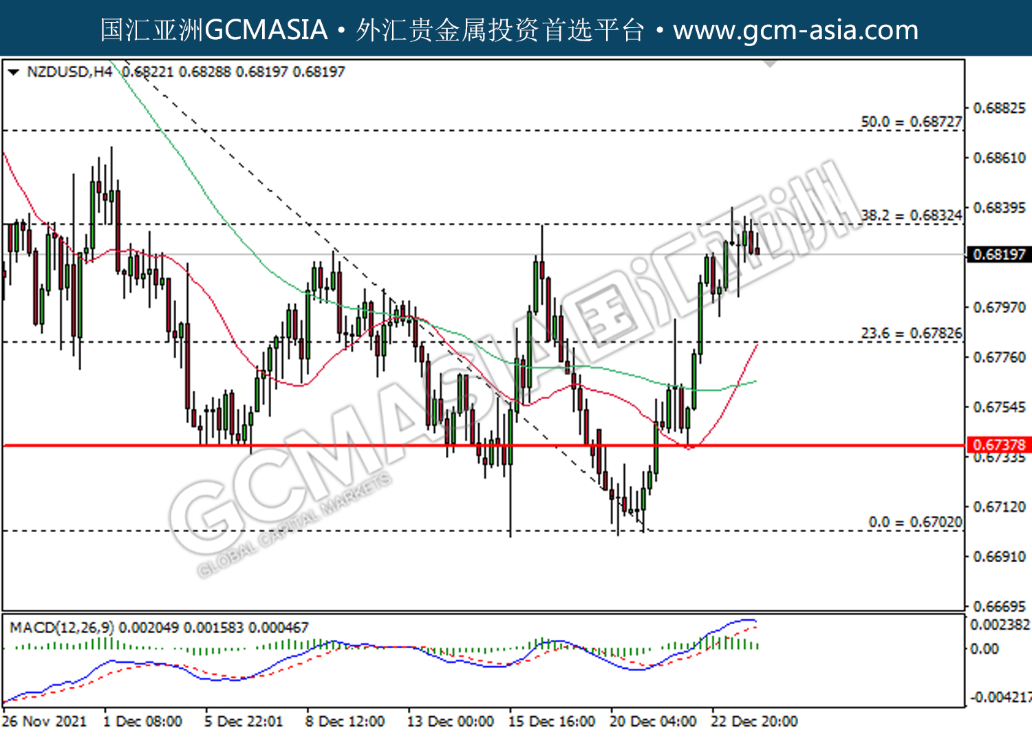 20211224 NZDUSD by willy | Dec 24, 2021 | 纽元兑美元 | 0 comments NZDUSD,H4:纽美高位承压回落。MACD多头动能有所略减,短期关注空头为主。上方关注0.6830压力和0.6870压力,下方关注0.6780支撑和0.6740支撑。