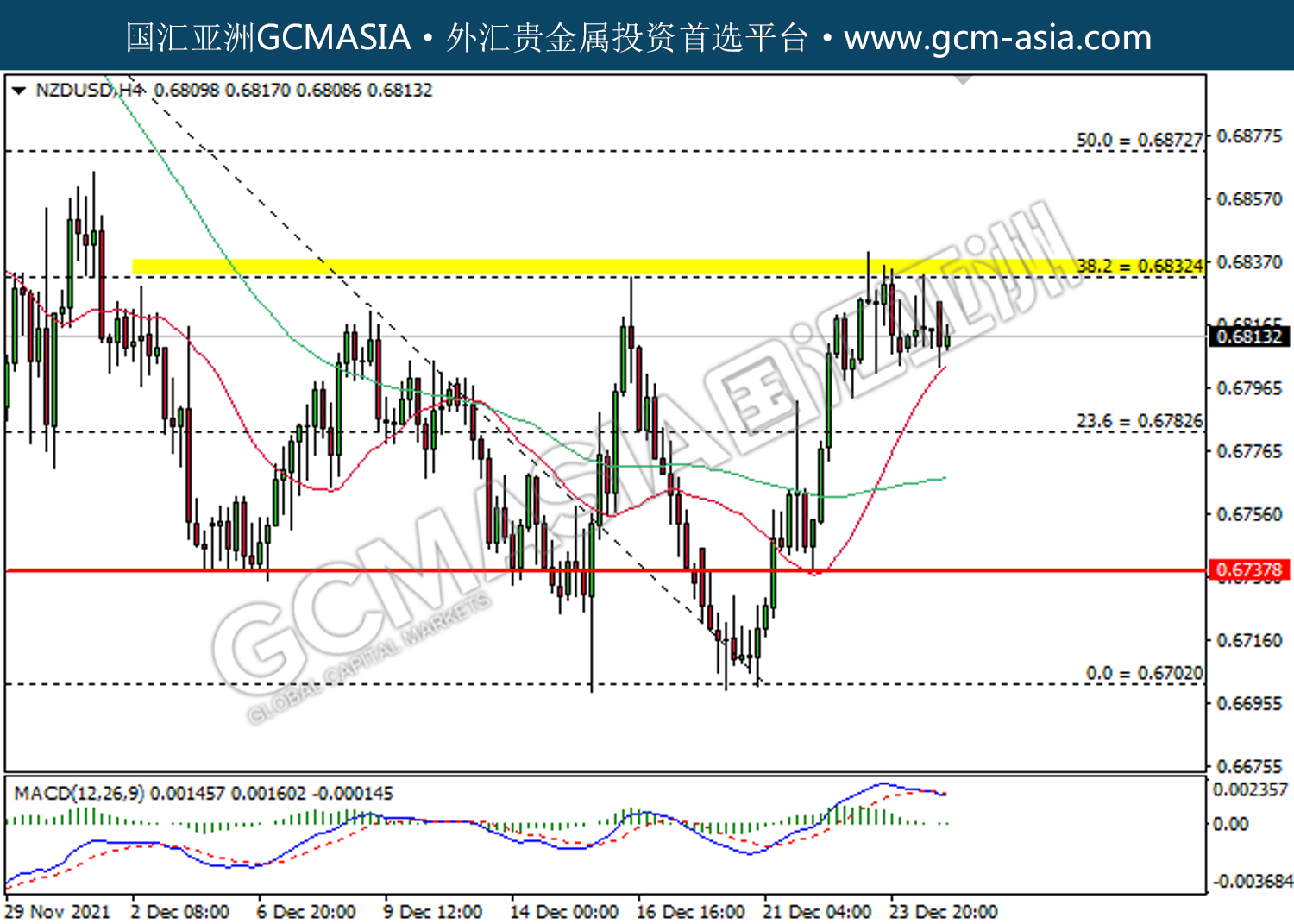 20211227 NZDUSD by willy | Dec 27, 2021 | 纽元兑美元 | 0 comments NZDUSD,H4:纽美高位承压回落。MACD已形成死叉,动能偏弱,短期关注空头为主。上方关注0.6830压力和0.6870压力,下方关注0.6780支撑和0.6740支撑。