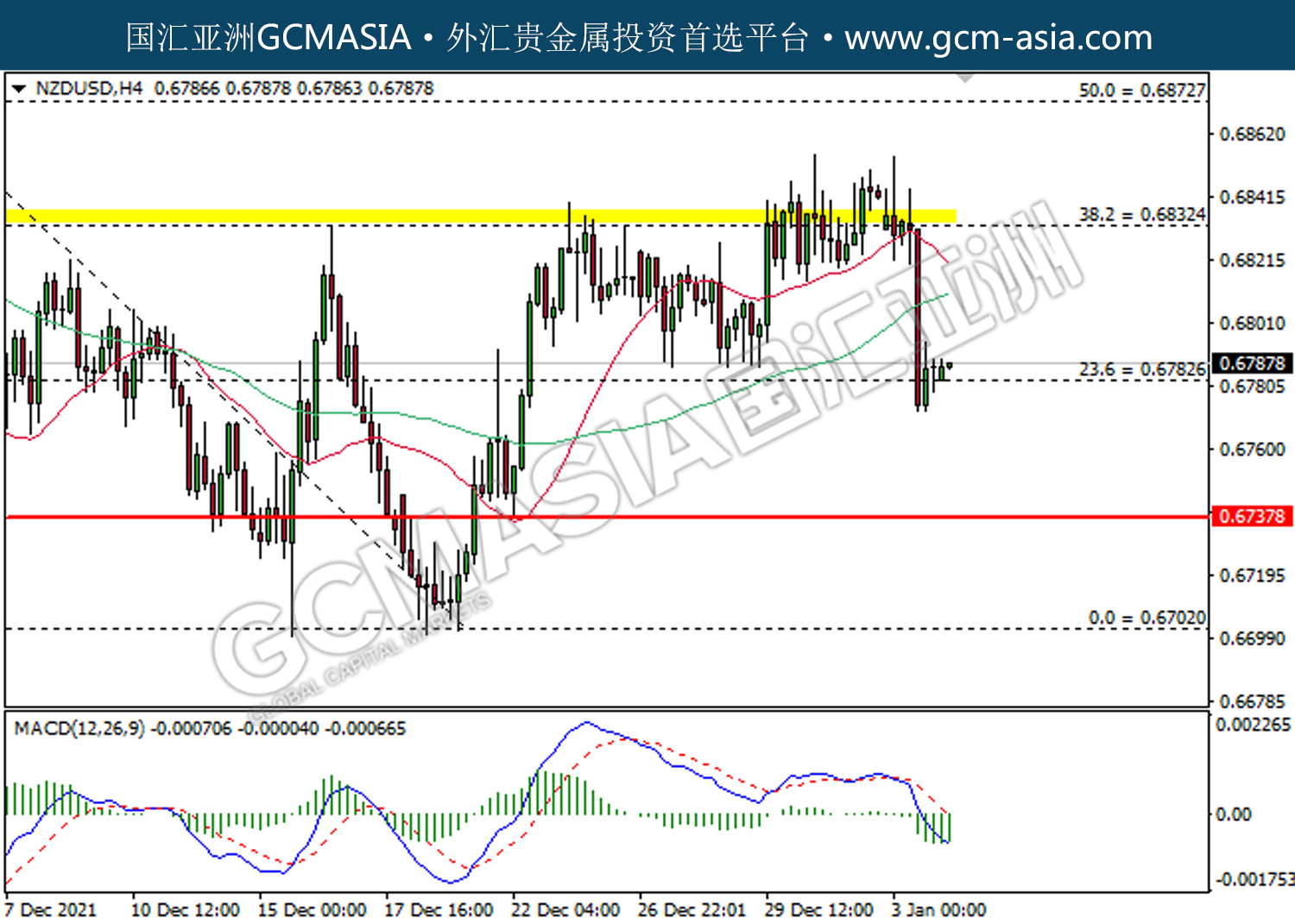 20220104 NZDUSD by willy | Jan 4, 2022 | 纽元兑美元 | 0 comments NZDUSD,H4:纽美震荡下行。MACD已形成死叉,动能转若,若下破可继续看空。上方关注0.6830压力和0.6870压力,下方关注0.6780支撑和0.6740支撑。