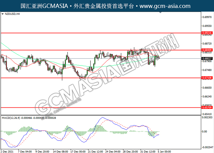 20220105 NZDUSD-午间 by willy | Jan 5, 2022 | 纽元兑美元 | 0 comments NZDUSD,H4: 纽美高位回落。然而,MACD空头动能略减,短期可关注技术性回调为主。上方关注0.6840和0.6920压力,下方关注0.6710支撑和0.6570支撑。