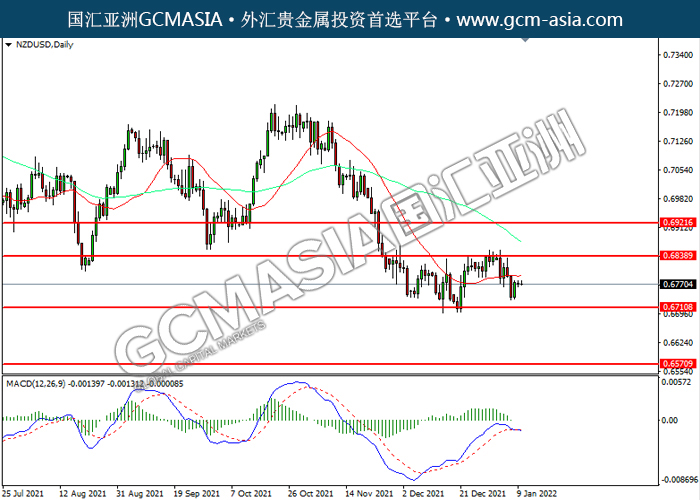 20220110 NZDUSD-午间 by willy | Jan 10, 2022 | 纽元兑美元 | 0 comments NZDUSD,Daily: 纽美高位回落,目前测试前期支撑。MACD多头动能略减,短期可关注空头为主。上方关注0.6840和0.6920压力,下方关注0.6710支撑和0.6570支撑。