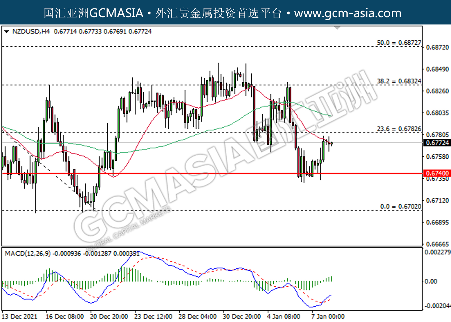 20220110 NZDUSD by willy | Jan 10, 2022 | 纽元兑美元 | 0 comments NZDUSD,H4:纽美低位反弹。MACD已形成金叉,动能转强,若上破可继续看多。上方关注0.6780压力和0.6830压力,下方关注0.6740支撑和0.6700支撑。