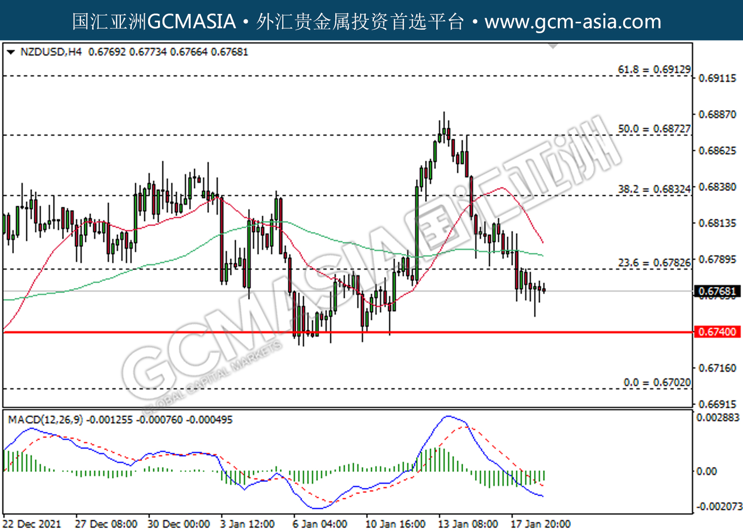 20220119 NZDUSD by willy | Jan 19, 2022 | 纽元兑美元 | 0 comments NZDUSD,H4:纽美高位承压回落。MACD已形成死叉,动能转弱,短期关注空头势力为主。上方关注0.6780压力和0.6830压力,下方关注0.6740支撑和0.6700支撑。