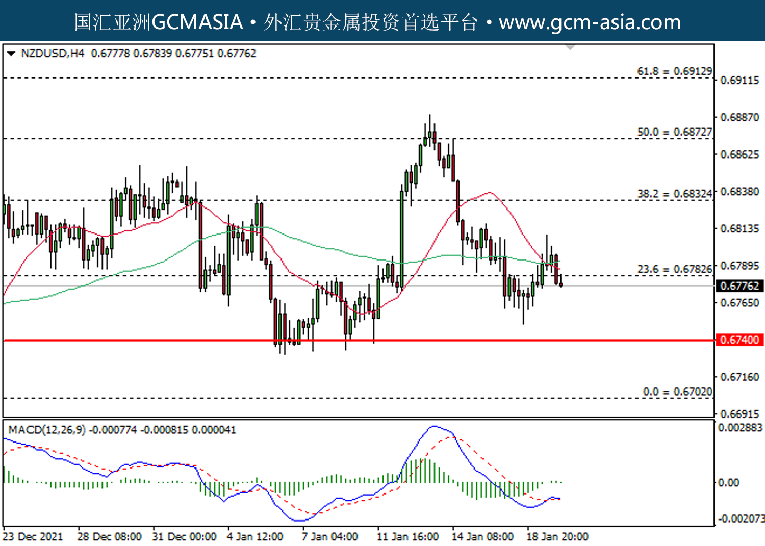 20220120 NZDUSD by willy | Jan 20, 2022 | 纽元兑美元 | 0 comments NZDUSD,H4:纽美高位承压回落。MACD已形成死叉,动能转弱,短期关注空头势力为主。上方关注0.6780压力和0.6830压力,下方关注0.6740支撑和0.6700支撑。
