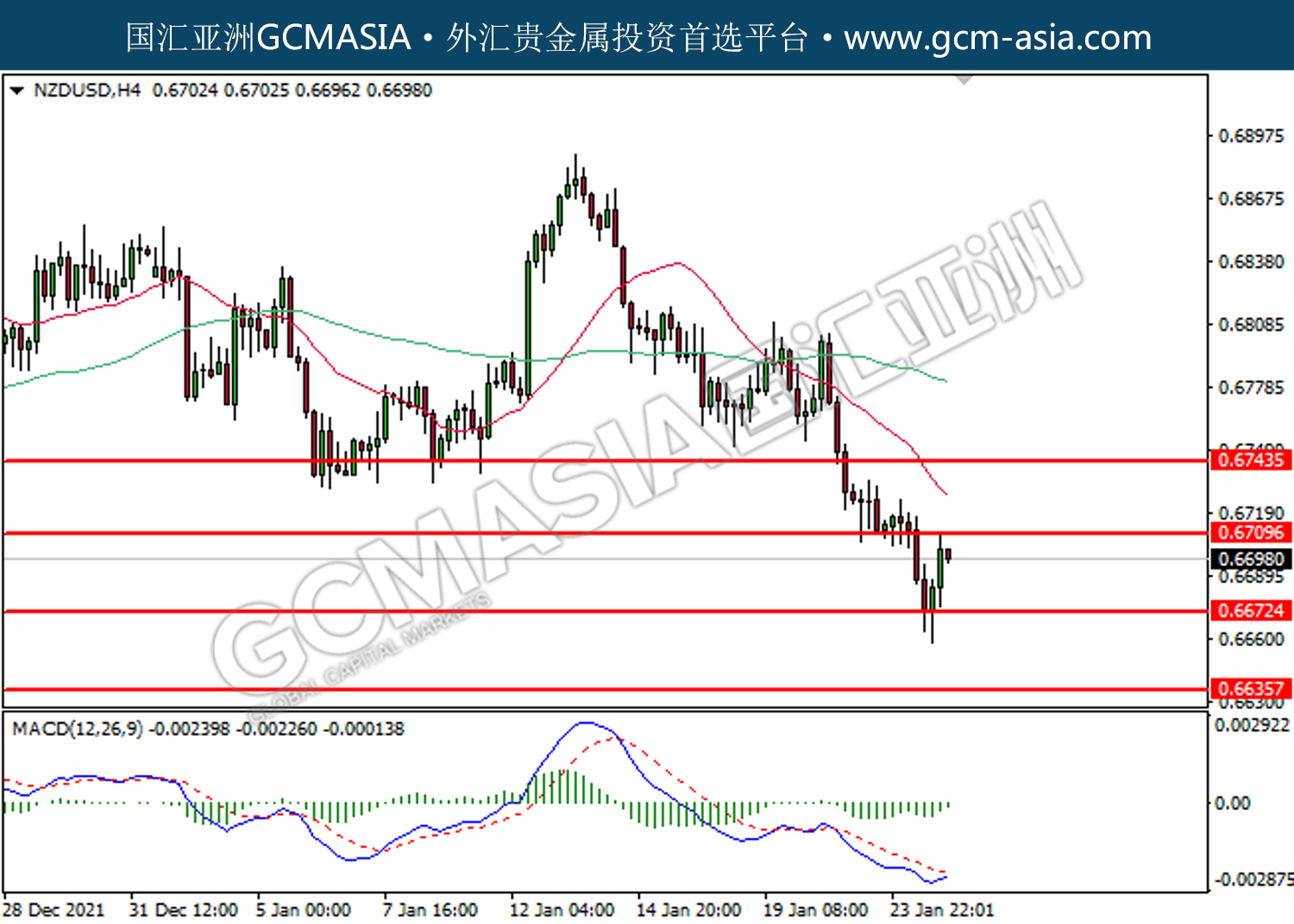 20220125 NZDUSD by willy | Jan 25, 2022 | 纽元兑美元 | 0 comments NZDUSD,H4:纽美低位反弹。MACD空头动能有所略减,短期关注多头势力为主。上方关注0.6710压力和0.6745压力,下方关注0.6670支撑和0.6635支撑。